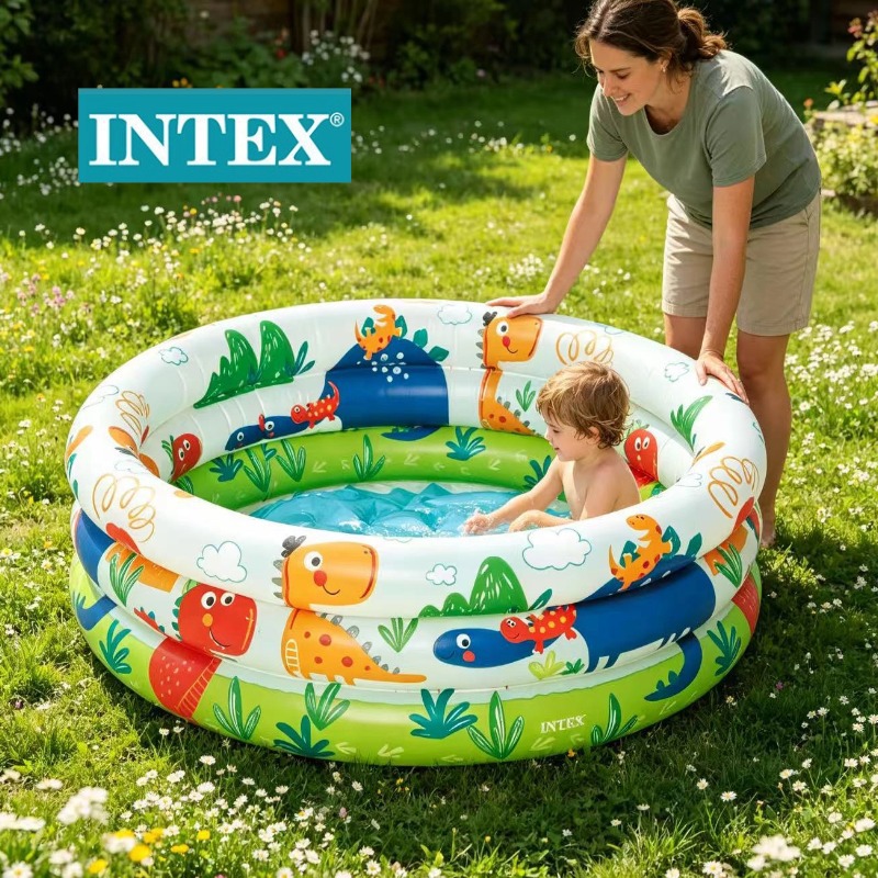 INTEX57106 Beruang Kecil Smiley Tiga Lingkaran Kolam Bayi Bulat Balita Bermain Air Inflatable Kolam Bola Laut