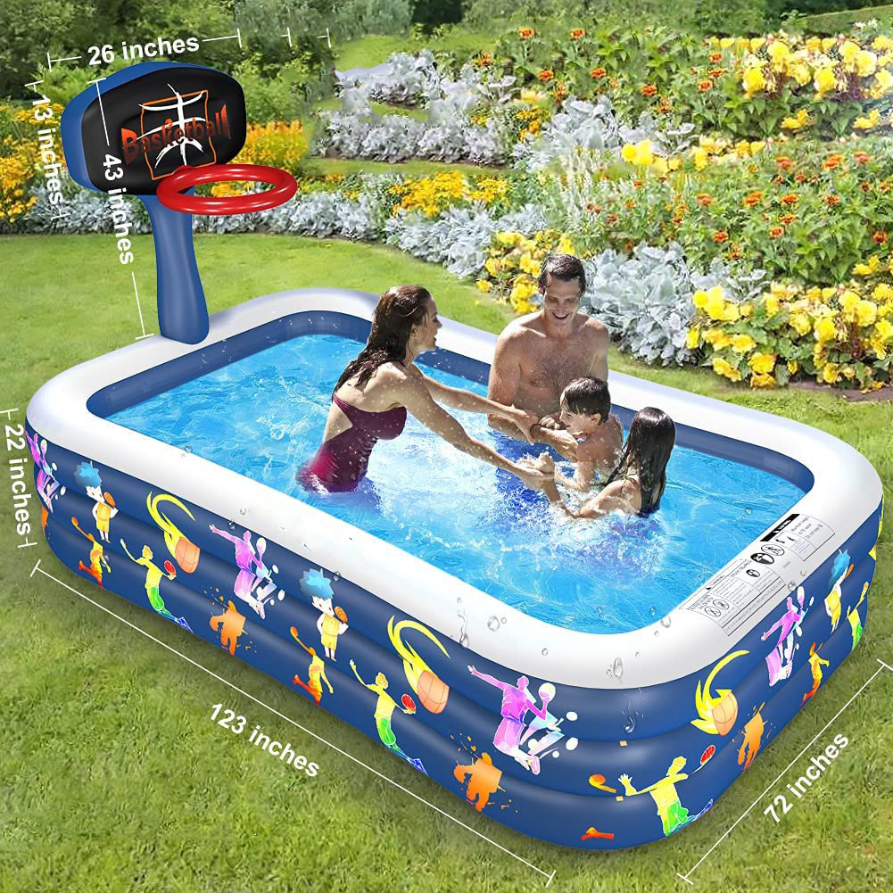 Kolam renang tiup anak-anak, bermain air rumput luar ruangan, kolam renang dewasa, mainan dudukan basket