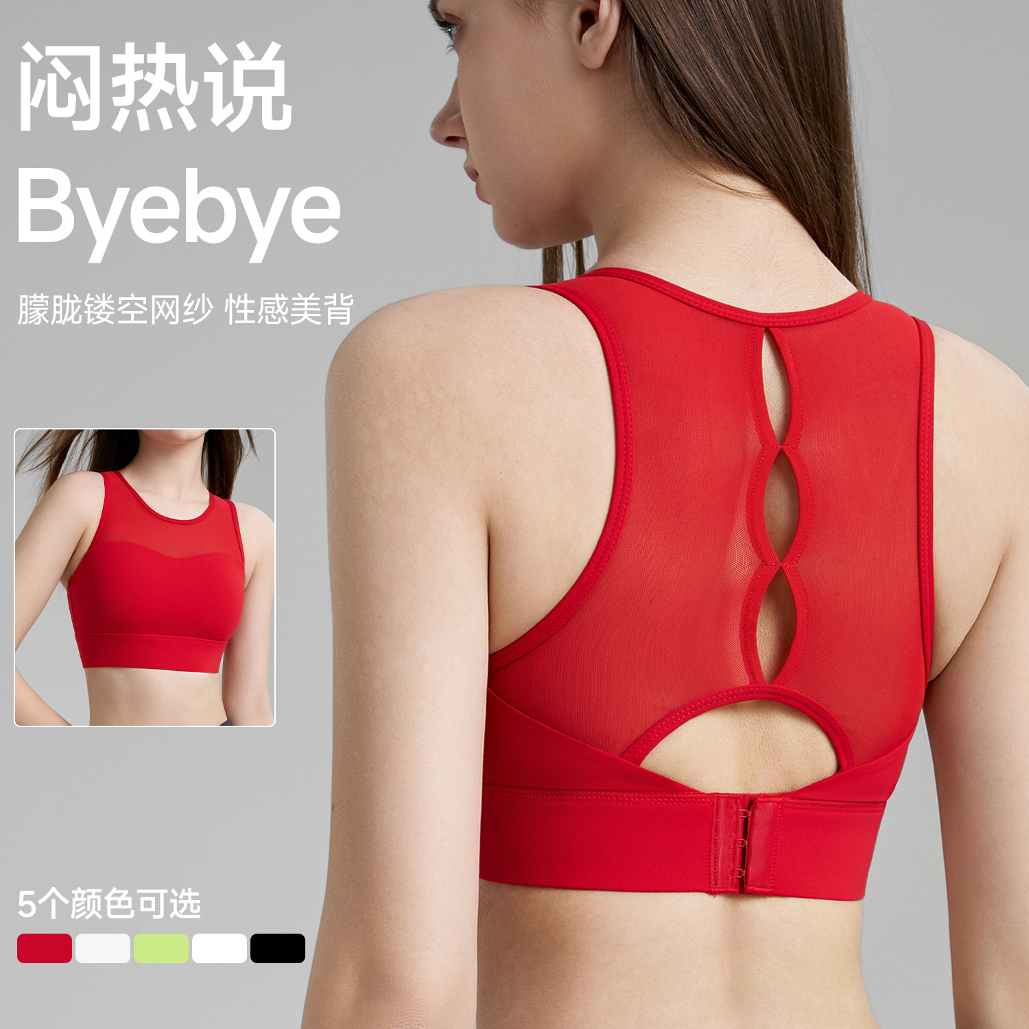 Pakaian Dalam Olahraga Kekuatan Tinggi Wanita 2025 Bra Kebugaran Punggung Berongga Produk Baru Jala Jahitan Kombinasi Rompi Yoga