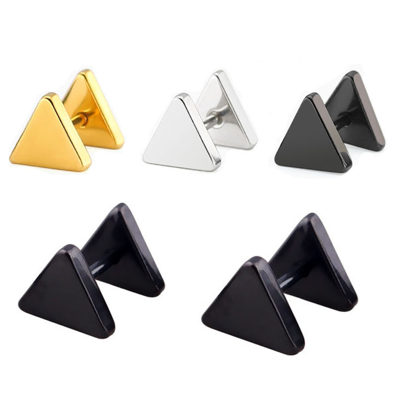 Gaya Korea sederhana segitiga dumbbell mode baja nirkarat giwang anting grosir Taobao AliExpress perhiasan lintas batas