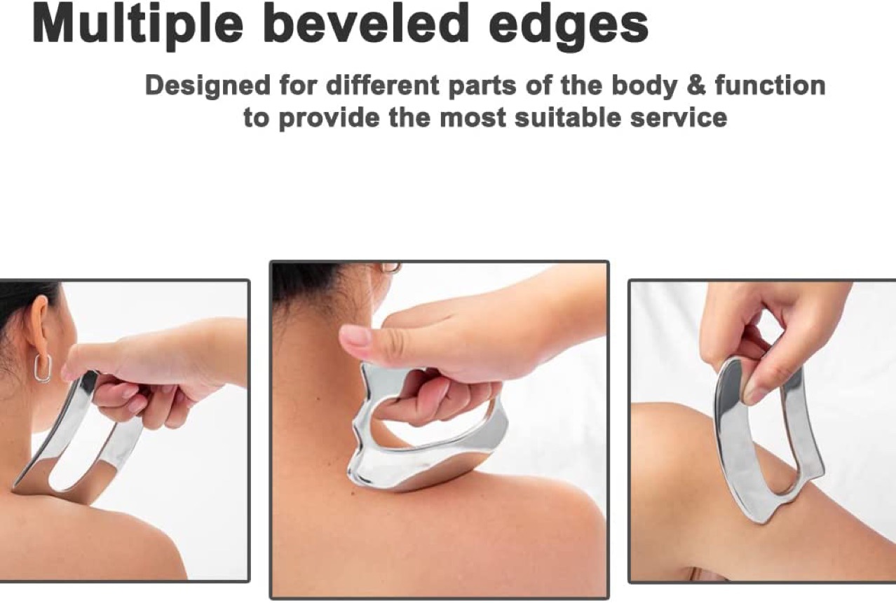 Set lengkap 304 Pijat baja tahan karat, pijat, pisau pengikis dan santai, pemijat untuk tutorial gratis