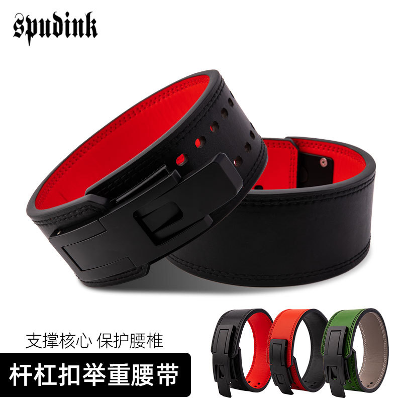 时尚简约牛皮深蹲举重护腰带可调节速扣电镀钢扣力量支撑腰带