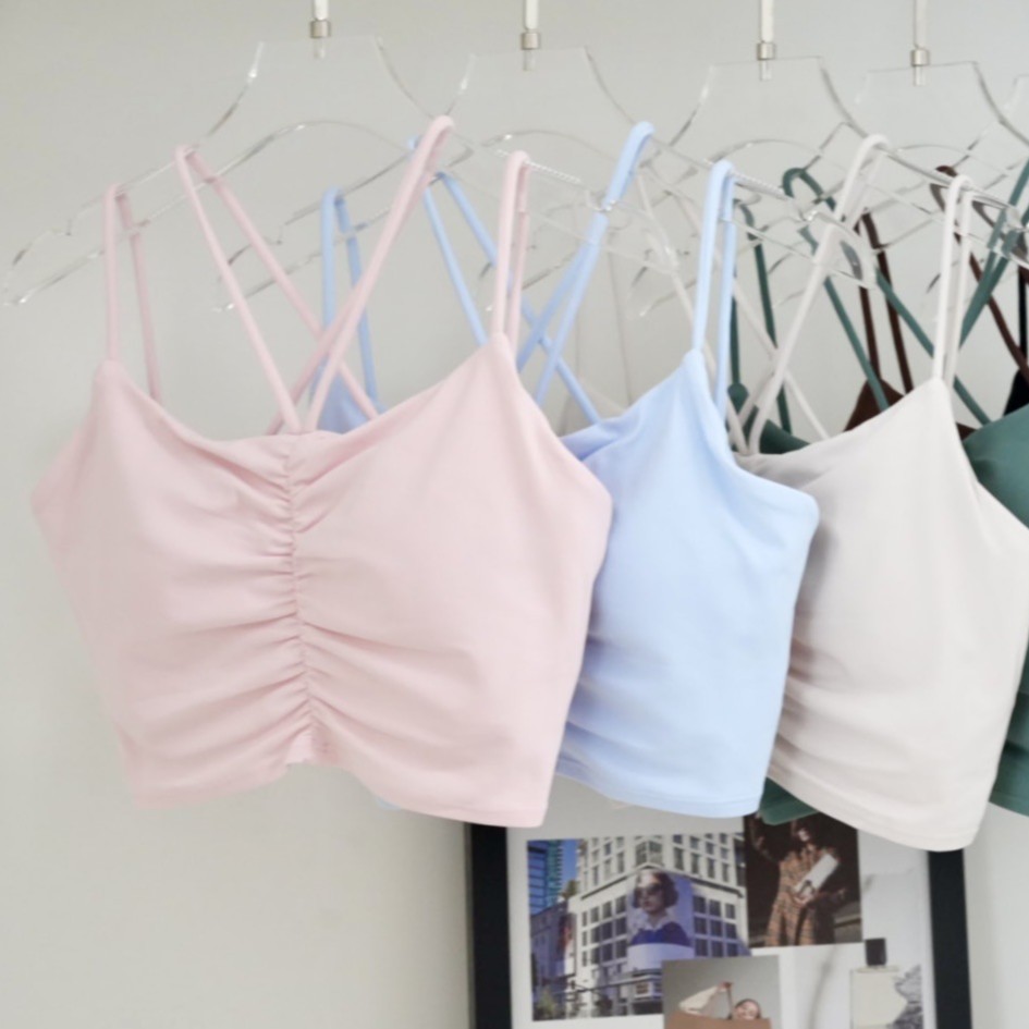 Pakaian Dalam Olahraga Gantung Leher Tank Top Yoga Wanita Tali Bahu Tipis Punggung Cantik Sling Kebugaran Bra Tahan Guncangan Luar Pakai Cepat Kering