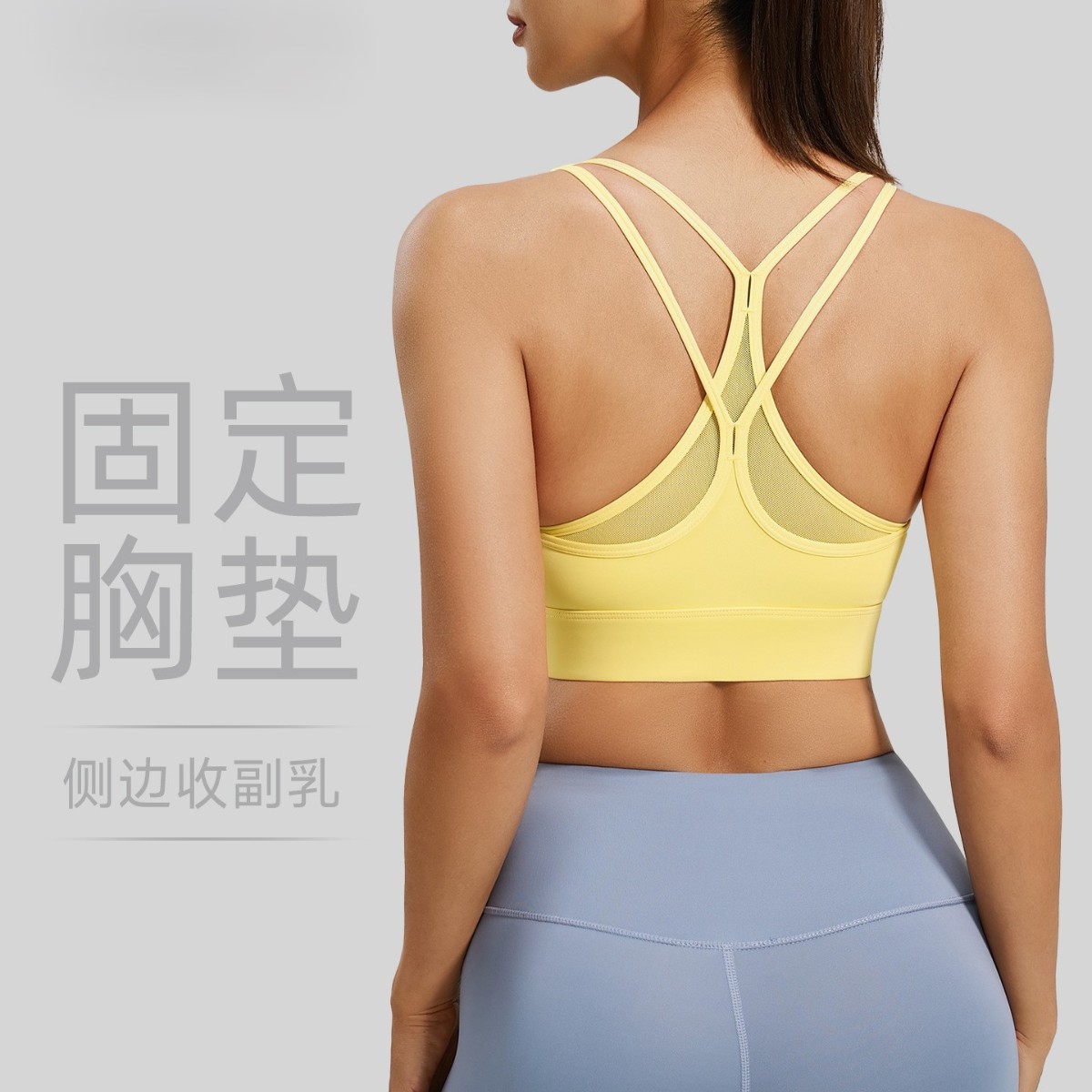 Selebriti Internet penjualan terlaris tali bahu lebar baru satu potong bantalan dada tetap pakaian dalam olahraga kebugaran yoga seksi push up kecantikan punggung