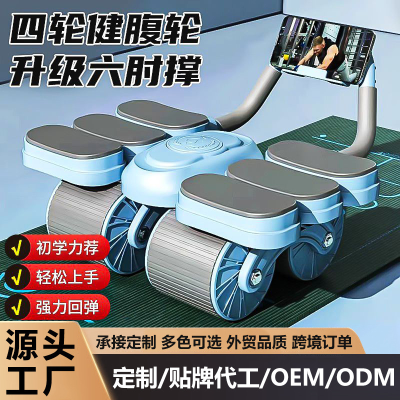 Kustom Roda Perut Enam Siku Empat Roda Otomatis Kembali Perut Rumahan Kurus Perut Roll Perut Peralatan Kebugaran Olahraga