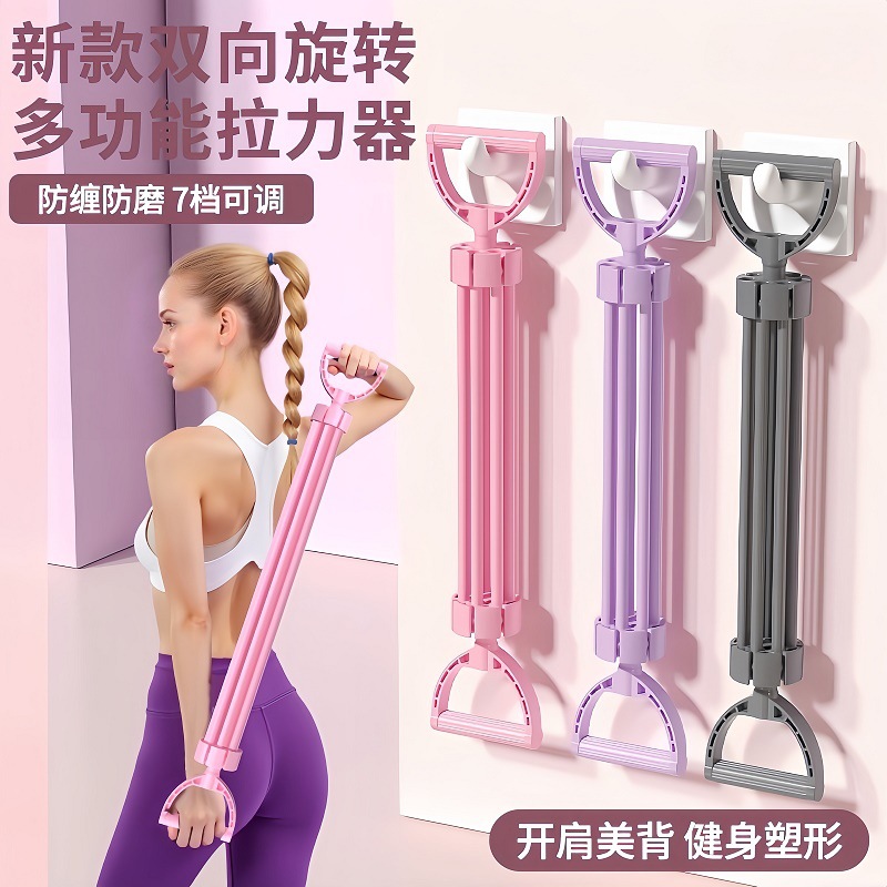 Pilates stik fitness, peralatan fitness rumah multifungsi, tali elastis, tali tarik regang