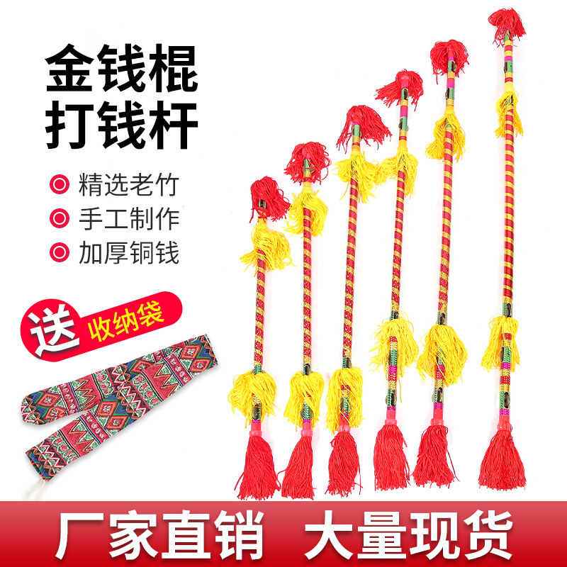 Tongkat Bunga Bunga Tarian persegi olahraga rakyat tongkat raja cambuk yang dipertebal batang koin tembaga alat peraga tari Hunan tongkat dansa lotus