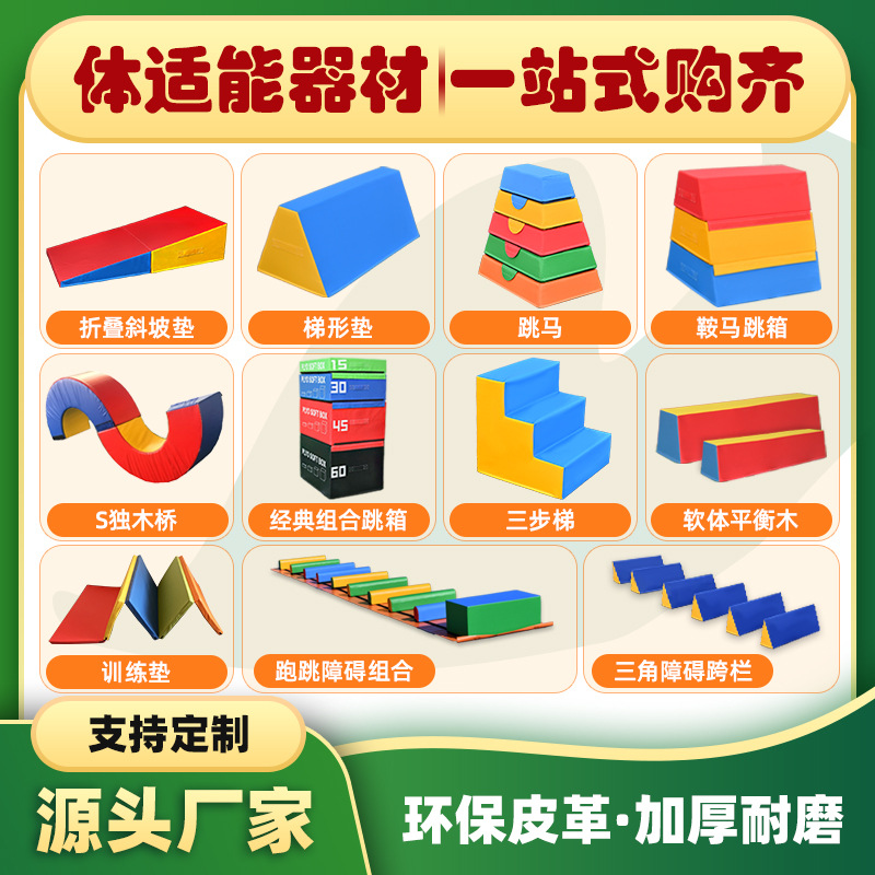 Peralatan latihan sensorik kebugaran anak-anak, set lengkap sadel balok keseimbangan kotak lompat kuda rintangan berlari dan melompat kombinasi perangkat lunak dalam ruangan