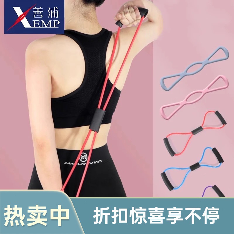 Peralatan Kebugaran anak perempuan, perangkat kebugaran Yoga delapan karakter, 8 bentuk ekspansi dada, tali tekanan 8 karakter
