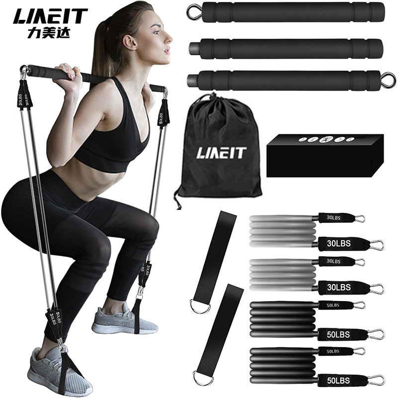 Setelan joran Pilates multifungsi, peralatan fitness rumah tiga bagian squat kecantikan tongkat Pilates tali tegangan