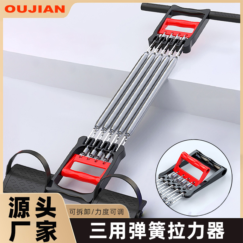 Pengencang pegas pedal kaki tiga-dalam-satu, pengembang kekuatan genggaman, pelatih kekuatan dada dan lengan, peralatan kebugaran, pedal kaki yang dapat dilepas untuk latihan seluruh tubuh.