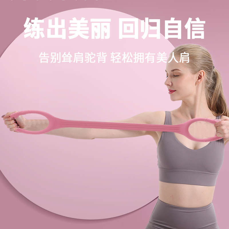 Alat Tarik 8 Karakter Peralatan Kebugaran Rumah Tangga Anti Bungkuk Buka Bahu Terbuka Silikon Tali Tarik Latihan Kekuatan