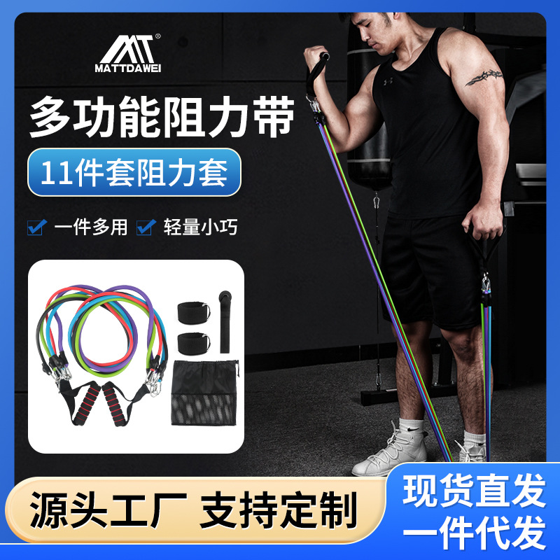 Tali resistensi 11 potong, gesper anjing baru, tali resistensi, perangkat tekanan TPE, kebugaran Yoga, setelan pabrik, penjualan langsung