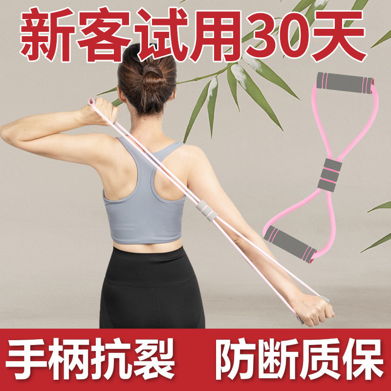 Perlengkapan yoga kebugaran rumah wanita, perangkat tegangan 8 kata, artefak kecantikan punggung terbuka, tali tegangan plastik, tali elastis, peralatan yoga kebugaran rumah