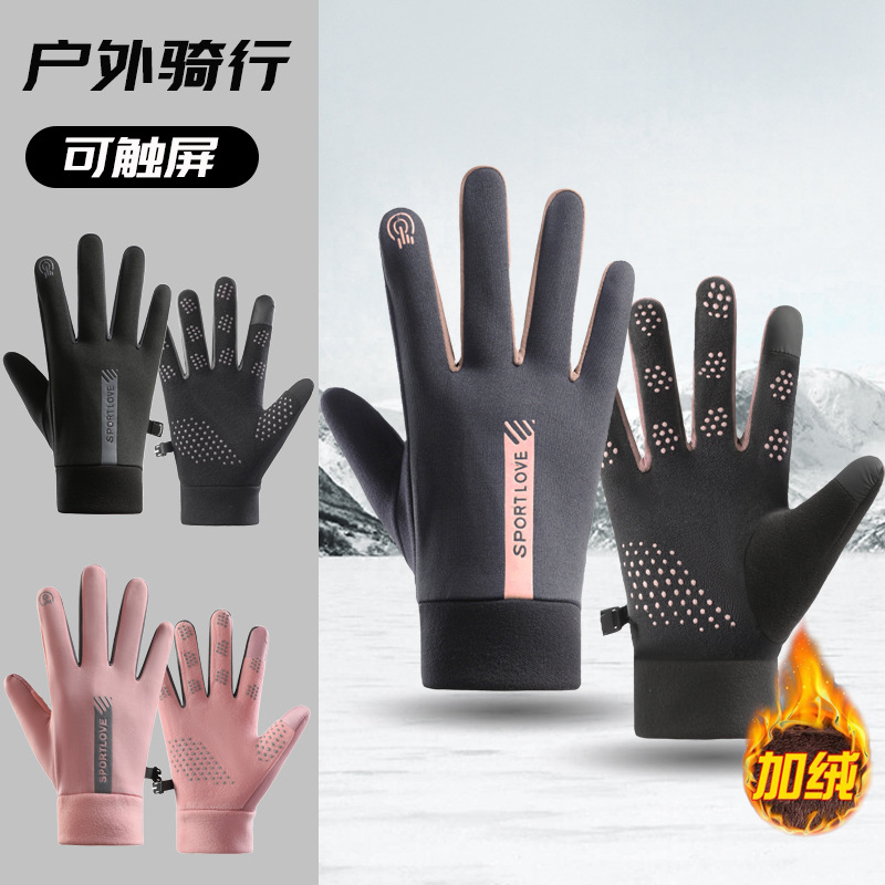 德绒保暖手套男女士秋冬季加绒防风防滑触屏防寒手套骑行户外运动