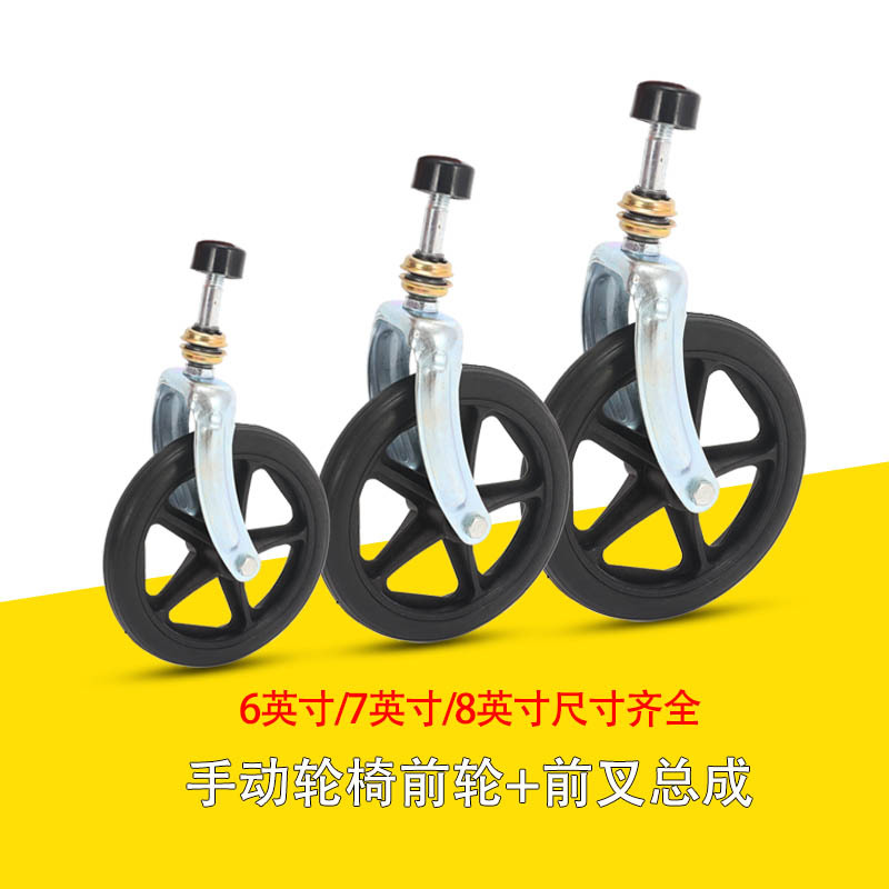 轮椅配件大全前轮前叉总成一套带轴承免充气6寸7寸8寸万向轮小轮