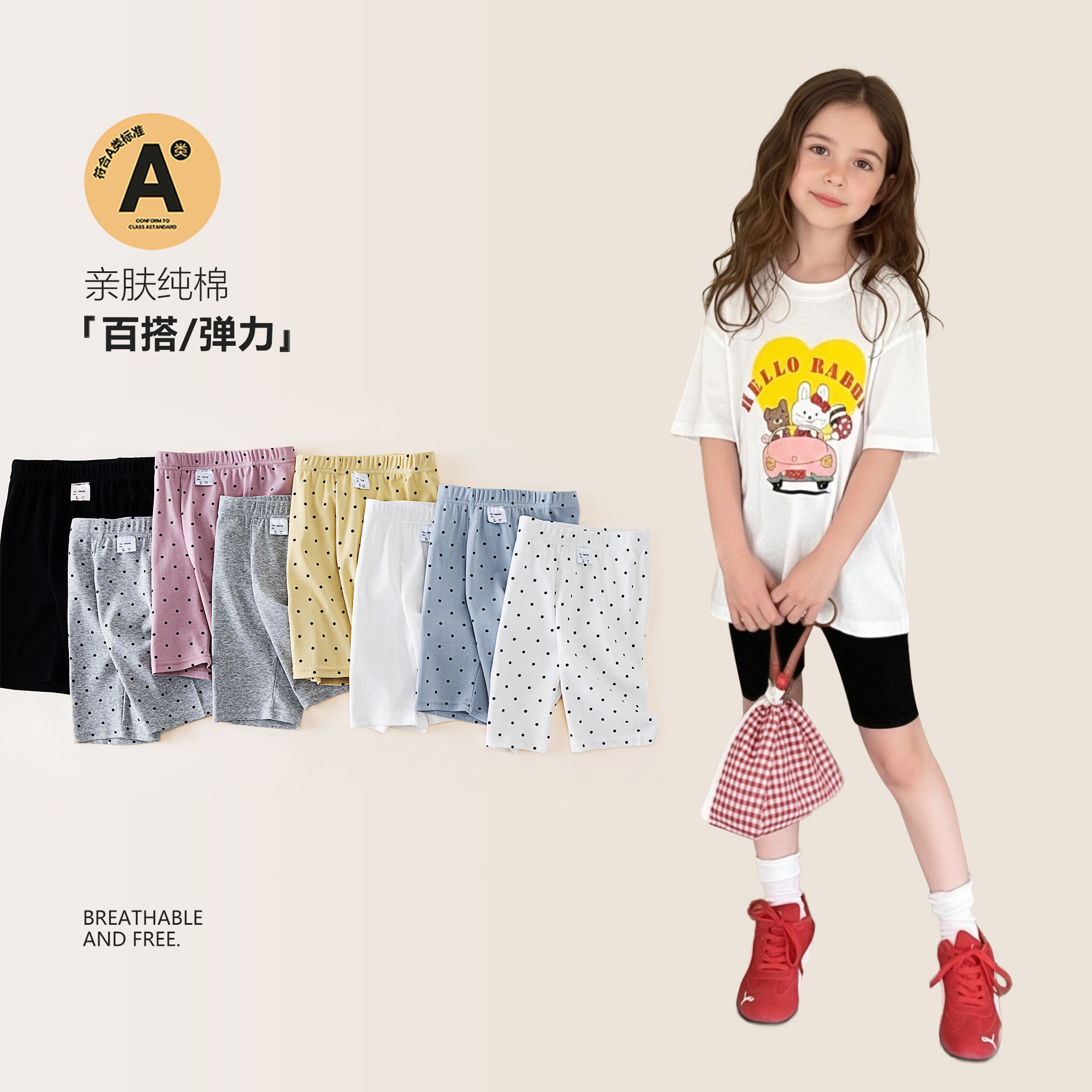 Celana Bersepeda Musim Panas Anak Perempuan Korea Polo Dot Warna Solid Sisir Katun Elastis 5 Poin Legging Tinggi Anti Terang