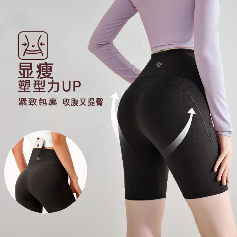 Empat Persen Celana Bersepeda Yoga Rawan Kulit Mengangkat Pinggul Lapis Ganda Celana Kebugaran Dalaman Tidak Memalukan Harian Mudah Dipadu Padan