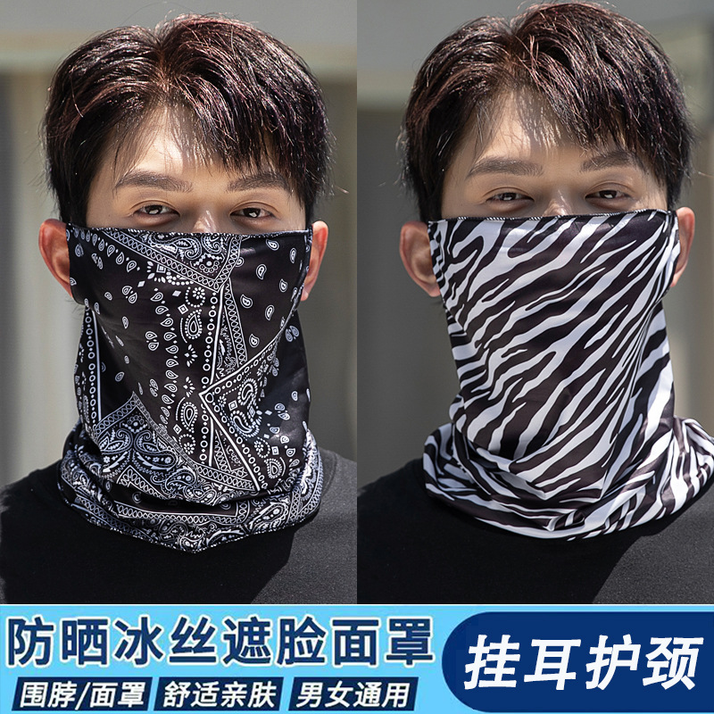 Masker pelindung matahari jaring es sutra dingin syal penutup telinga leher perlindungan wajah musim panas bersepeda olahraga memancing handuk wajah bernapas