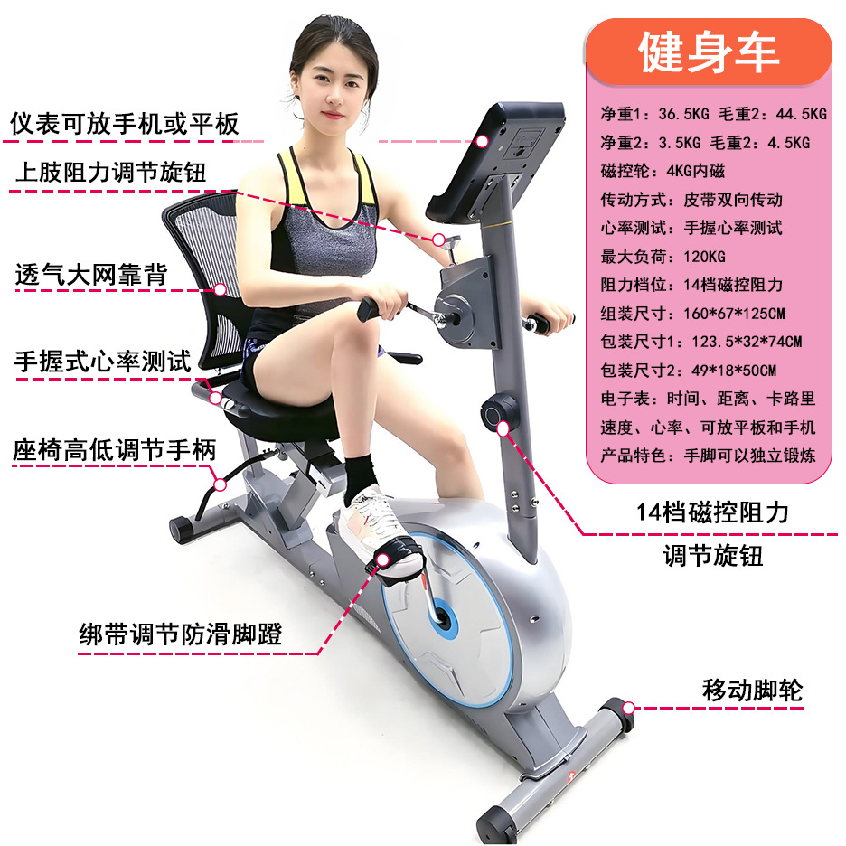Sepeda latihan malas horizontal, perangkat kebugaran sepeda dinamis, sepeda malas, kontrol magnetik Rumah, sepeda latihan malas, sepeda