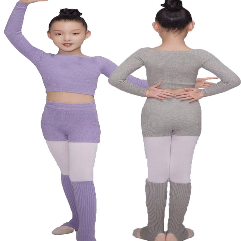 Sweter dansa anak-anak musim gugur dan musim dingin, baju latihan selendang balet lengan panjang, mantel kecil rajut tebal anak-anak