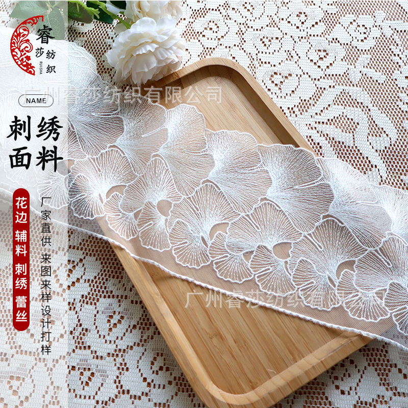 Pabrik di stok daun ginkgo manik-manik benang emas mesh bordir renda pakaian dalam pakaian tari aksesoris renda