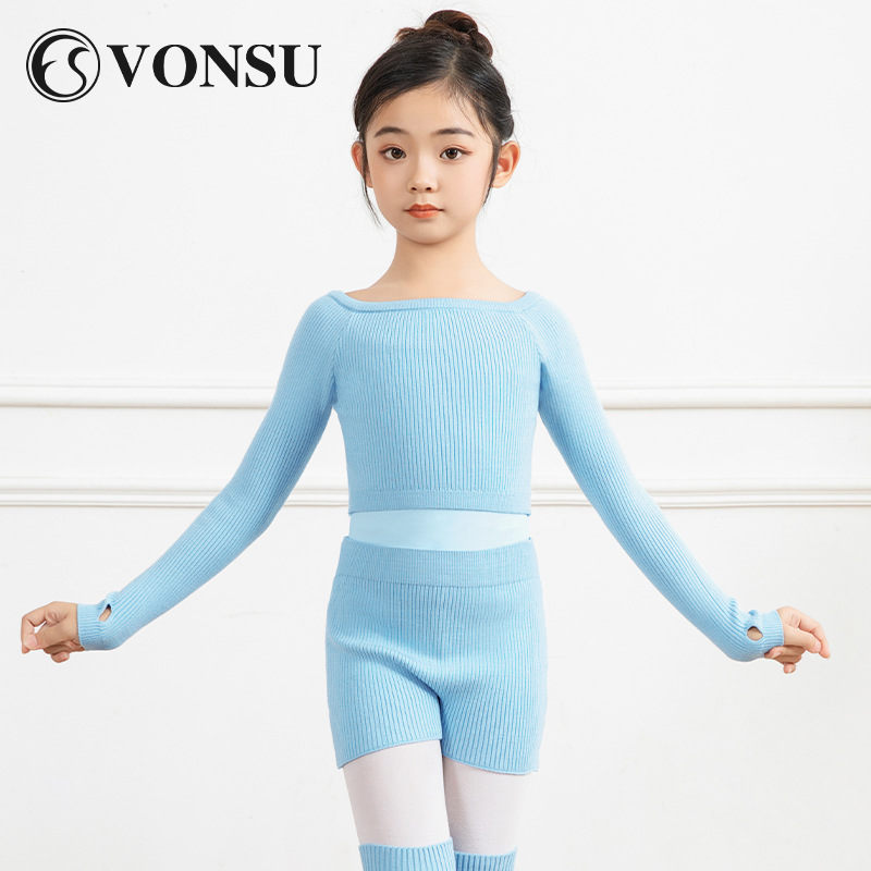 Sweter Tari Anak-anak Pakaian Latihan Balet Musim Gugur Musim Dingin Kerah Huruf Anak Perempuan Jaket Kecil Menari Lengan Panjang