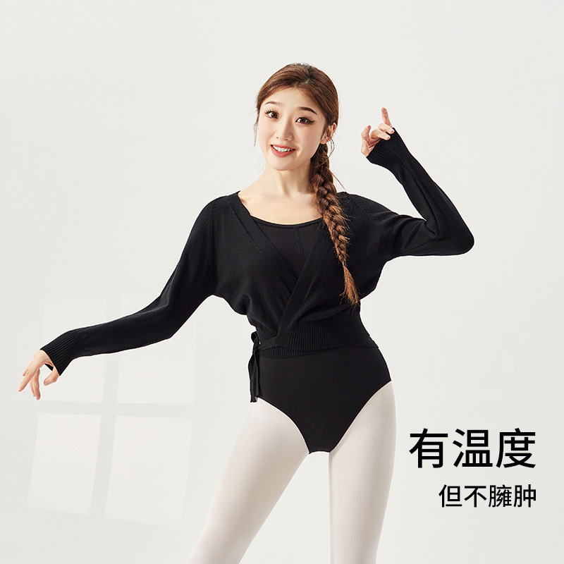 Sweater Tari Jaket Hangat Musim Dingin Wanita Pakaian Latihan Bentuk Tubuh Dewasa Atasan Tari Lengan Panjang Selendang Balet