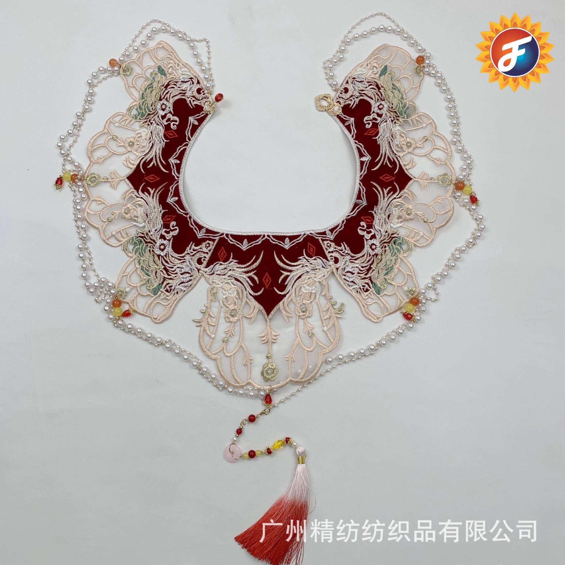 Grosir baju pengantin rantai manik-manik pengolahan Hanfu merah bahu awan Aksesori tari perhiasan performa hiasan kepala perut kupu-kupu