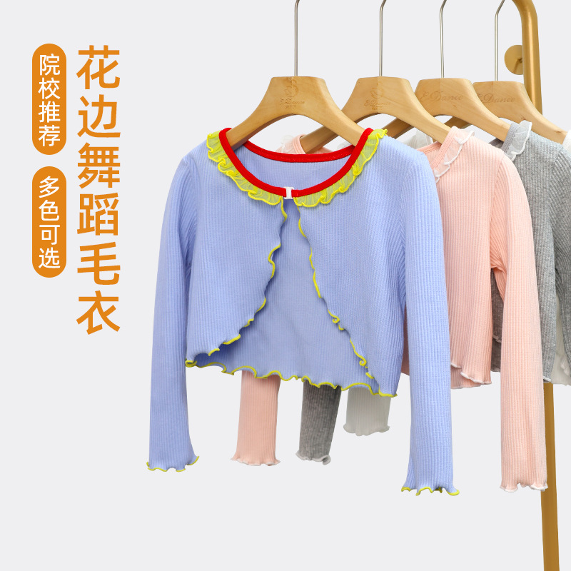 Jaket Tari Anak-anak Anak Perempuan Lengan Panjang Hangat Selendang Tari Musim Gugur dan Musim Dingin Baju Atasan Kecil Menari Bertarung Luar Bahu