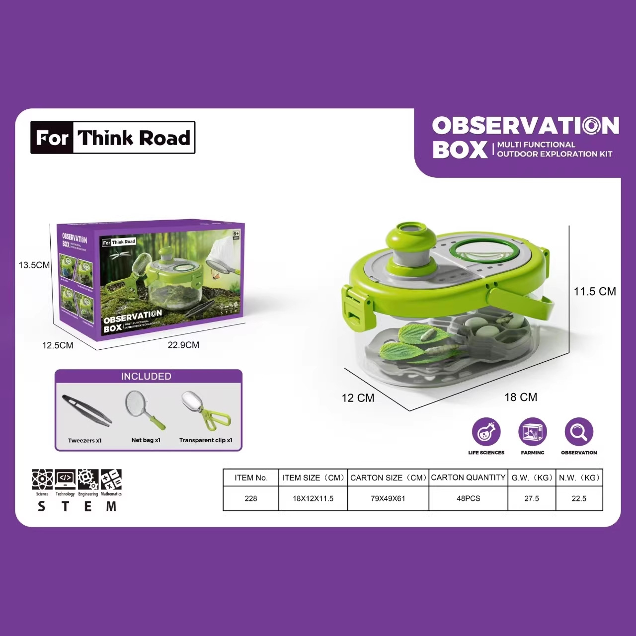 Kotak observasi serangga multifungsi, kotak koleksi dengan kaca pembesar petualangan biologi mainan berkemah luar ruangan