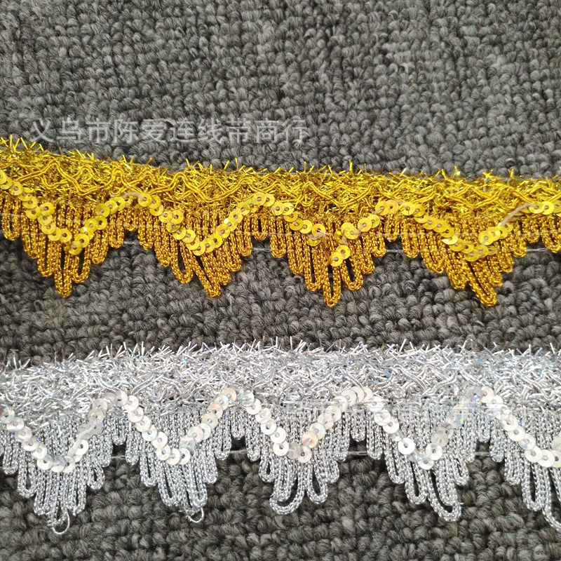 13 M 4cm Tari Gunung gelombang DIY bahan pakaian Aksesori tahap Aksesori payet emas dan perak sutra renda 971 #