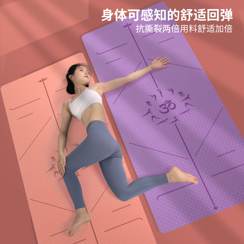 TPE matras yoga, tikar menari yoga, garis posisi pemula, diperpanjang, tebal, anti-selip, tikar kekurangan mikro