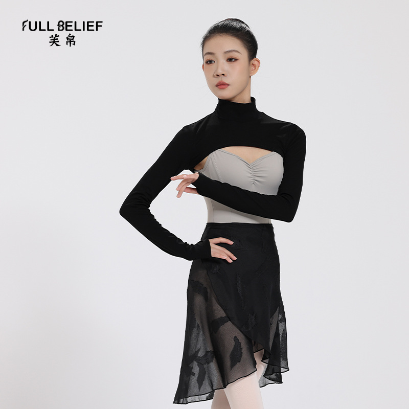 Baju Atasan Warna Hitam Pullover Luar Pakaian Latihan Selendang Kerah Tinggi Dewasa Jaket Lengan Panjang Wanita Pakaian Tari Balet