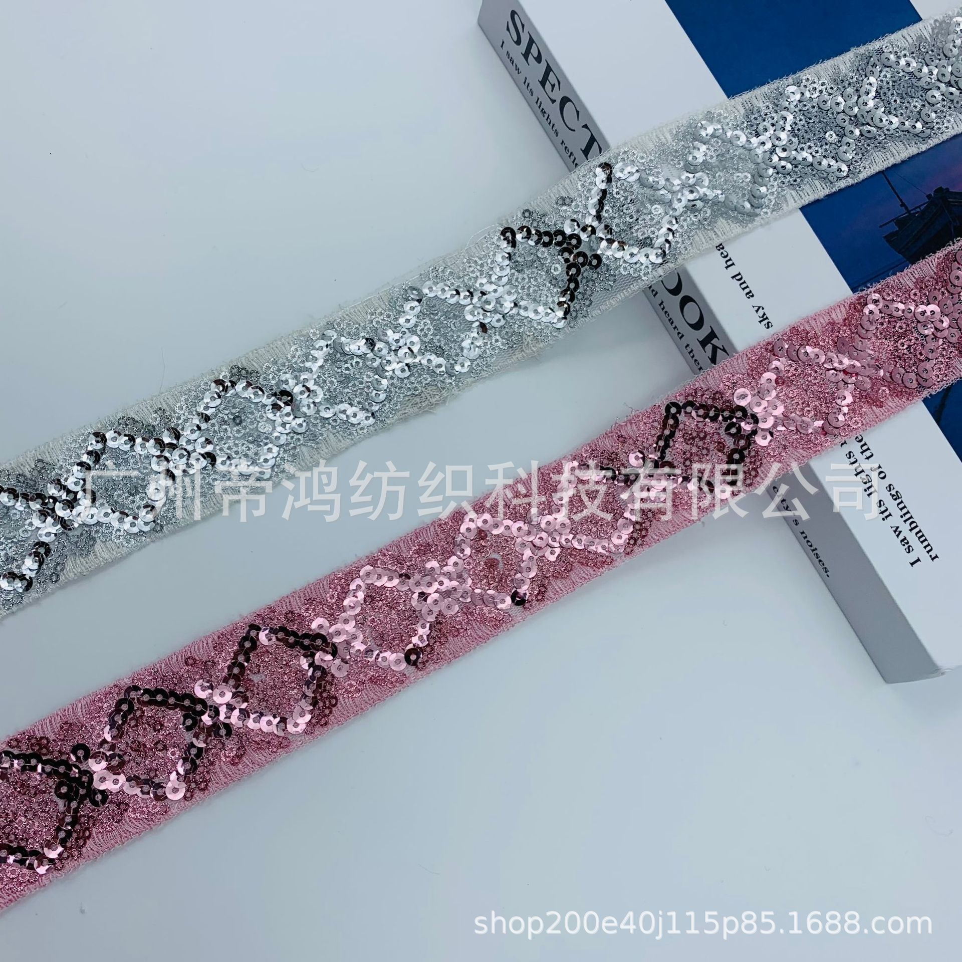 Aksesori pakaian pertunjukan tari pita manik-manik warna-warni 4cm renda berongga payet jala