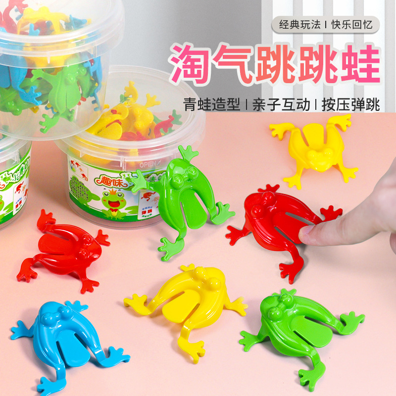 Interaksi orang tua-anak kodok lompat katak plastik kodok memantul mainan nostalgia anak-anak post-s