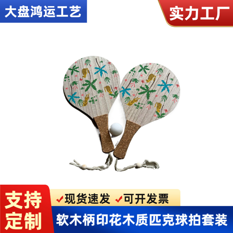 Set Raket Pick Kayu Bersablon Pegangan Kayu Raket Bulu Tangkis Raket Pantai Raket Tenis Meja Dalam Ruangan