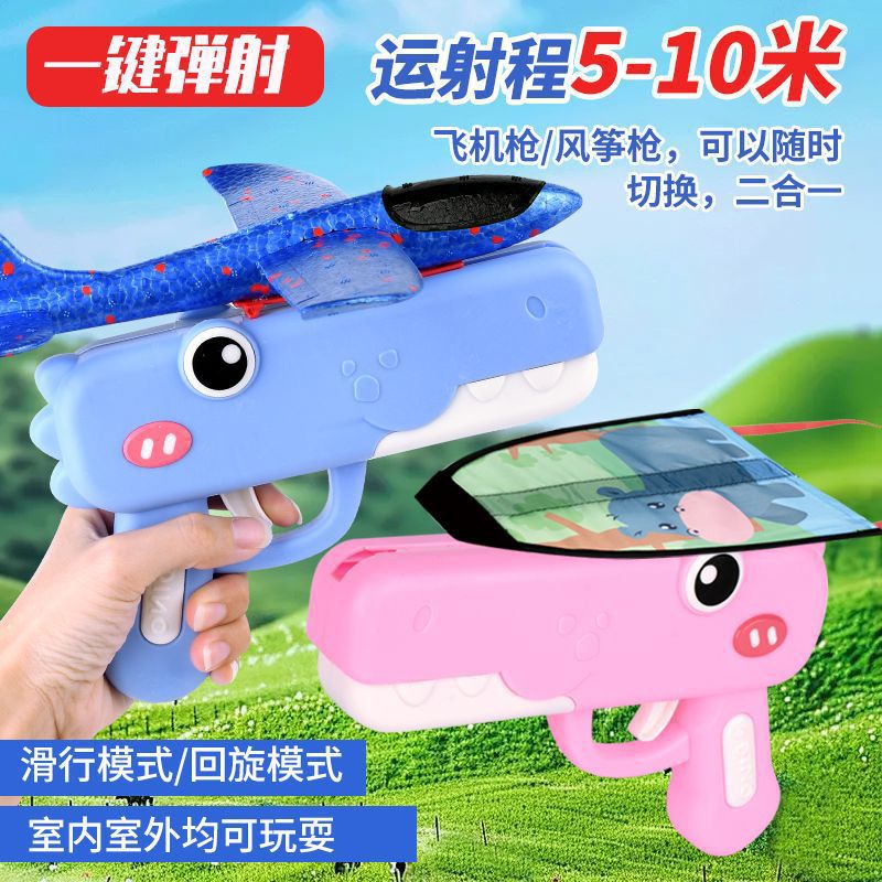 Lintas batas anak melontarkan pistol mainan pesawat busa tembak satu tombol menembak luar ruangan mainan terbang layang-layang