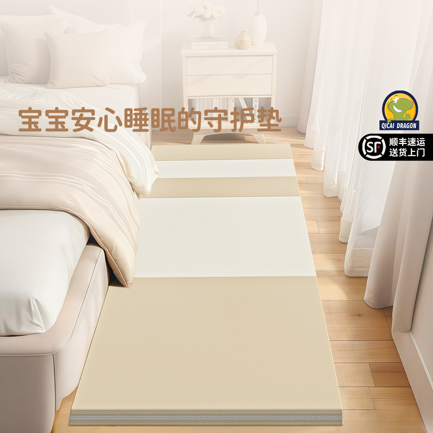 Alas Tepi Tempat Tidur Naga Berwarna-warni Alas Merangkak Lipat Bayi PU Anak 4cm Dipertebal IXPE Alas Merangkak Bayi Bisa Dilipat