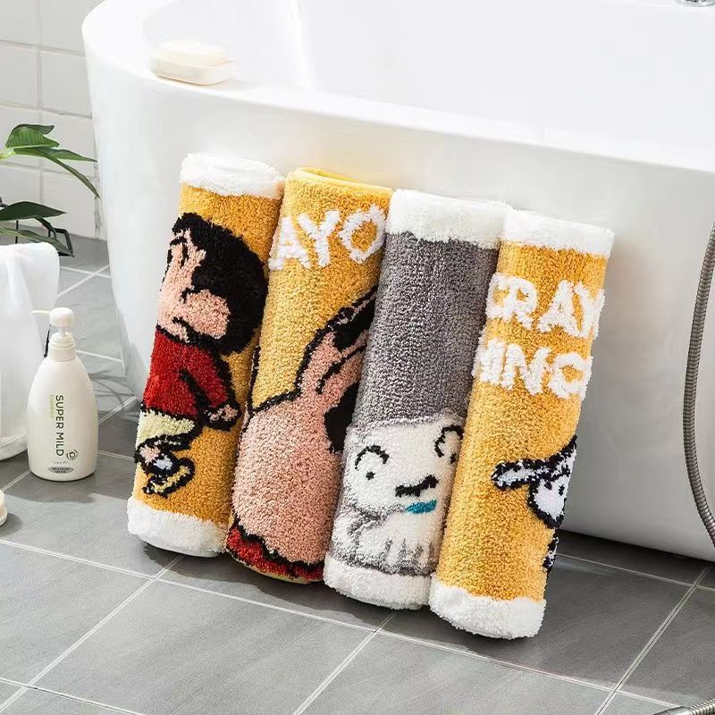 Karpet lantai dari tanah diatom Crayon Shin-chan untuk kamar mandi rumah, menyerap air, cepat kering, tahan kotoran, tahan aus, keset anti selip.
