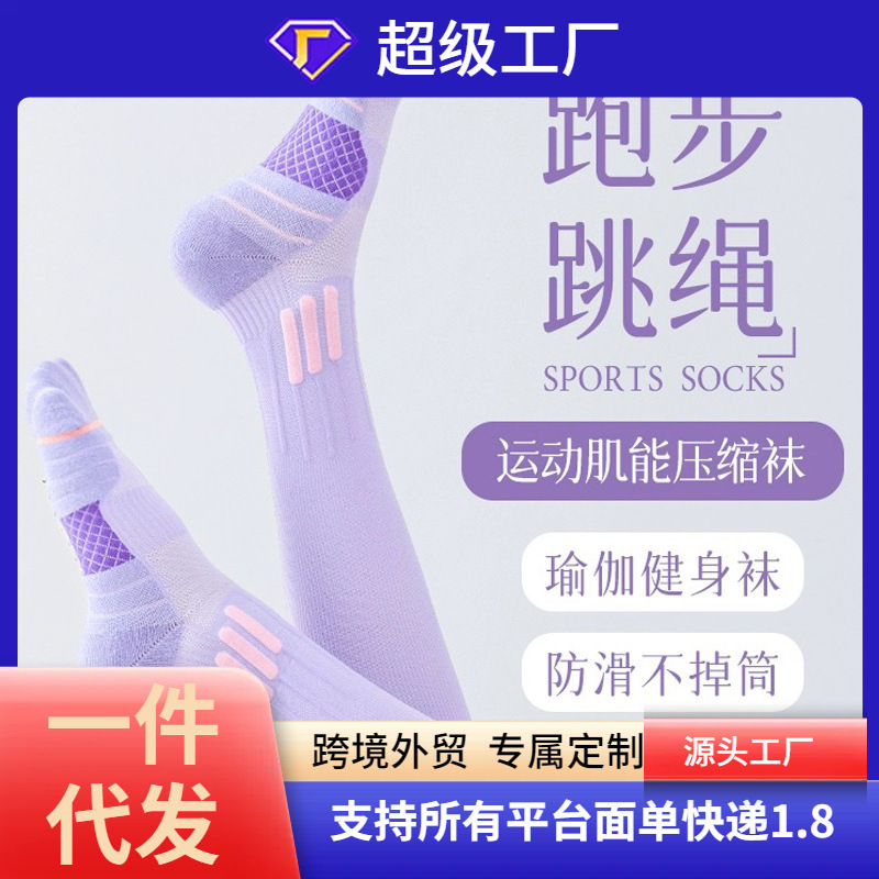 运动机能小腿袜子女夏季专用健身跑步跳绳压缩弹力瘦腿压力袜长筒