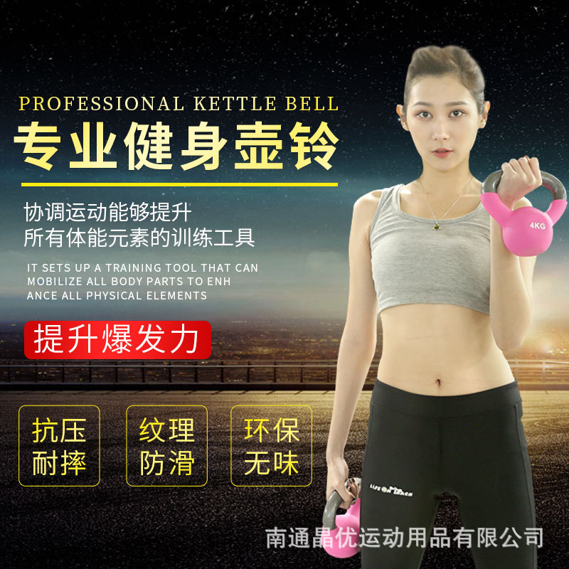Penjualan langsung dari pabrik ketel bel Wanita Pria Kebugaran Latihan otot rumah warna dipping ketel bola bel angkat pot dumbbell dilapisi plastik