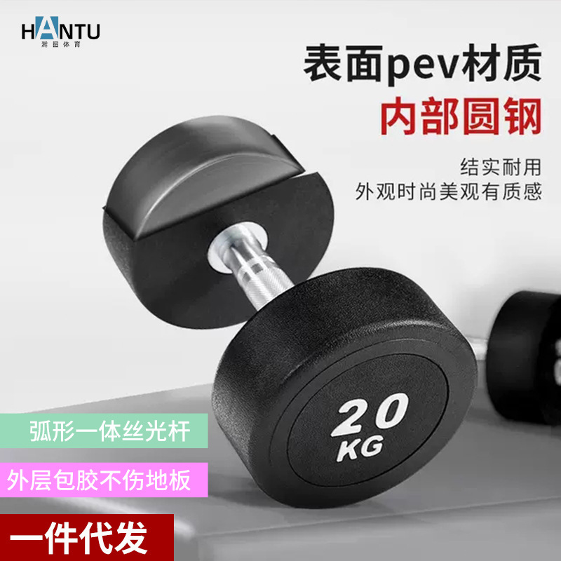 Dumbbell dilapisi karet kepala bulat dapat disesuaikan logo gym home fitness dalam stok penjualan langsung kepala bulat baja murni internal dilapisi karet matte
