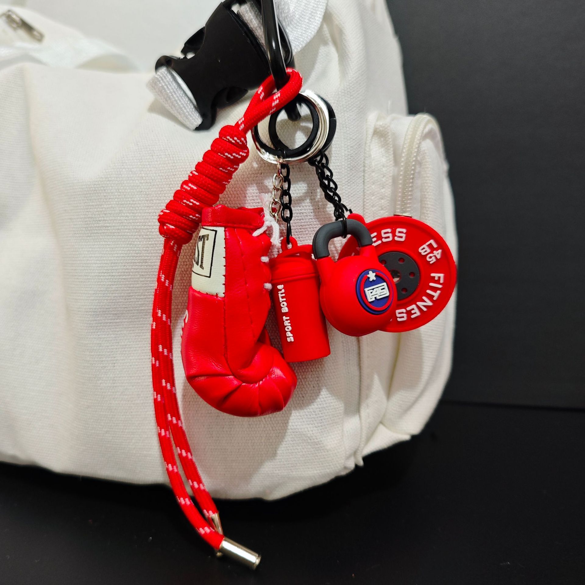 Sarung Punch Kulit Imitasi Kettlebell Kebugaran Mini Barbell Tas Gantungan Kunci Gantungan Kunci Dopamin Nilai Wajah Tinggi Seri miu