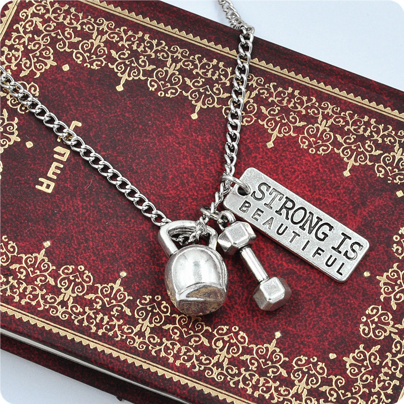 Perhiasan Eropa dan Amerika kuat indah latihan kebugaran halter barbel kettlebell pasangan liontin kalung