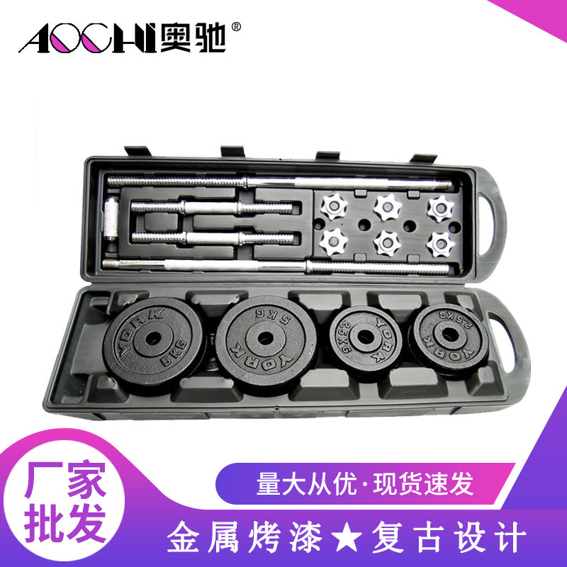 Dumbbell cat fitness barbel langsung pabrik setelan kotak plastik hadiah rakitan dumbbell 10-50kg Rumah Tangga pria