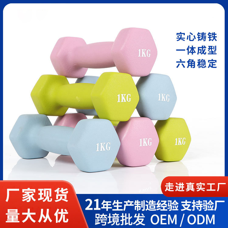 Halter heksagonal lintas batas, untuk latihan fitness dumbbell kecil untuk kantor rumah plastik, Halter celup besi cor padat