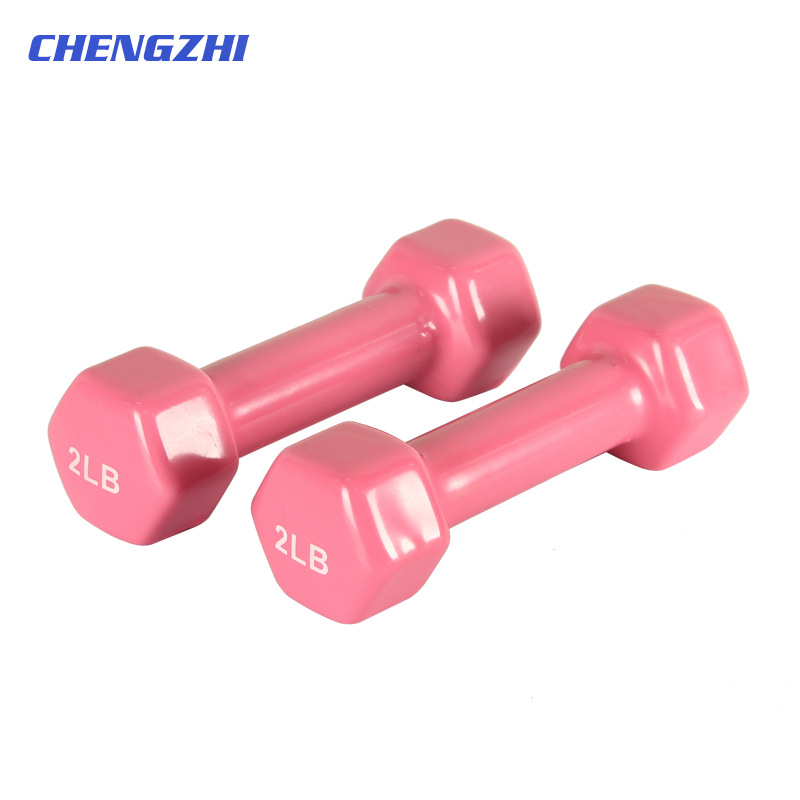 Dalam stok heksagonal glossy plastik dipping dumbbell Pria Wanita anak-anak kebugaran pegangan cembung plastik dipping dumbbell kecil penjualan pabrik
