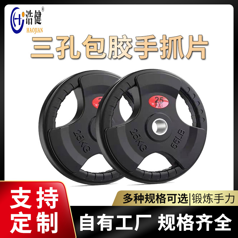 Potongan barbel dilapisi plastik tiga lubang, pegangan tangan lubang besar barbel gym bagian 5/10kg rumah tangga komersial pria