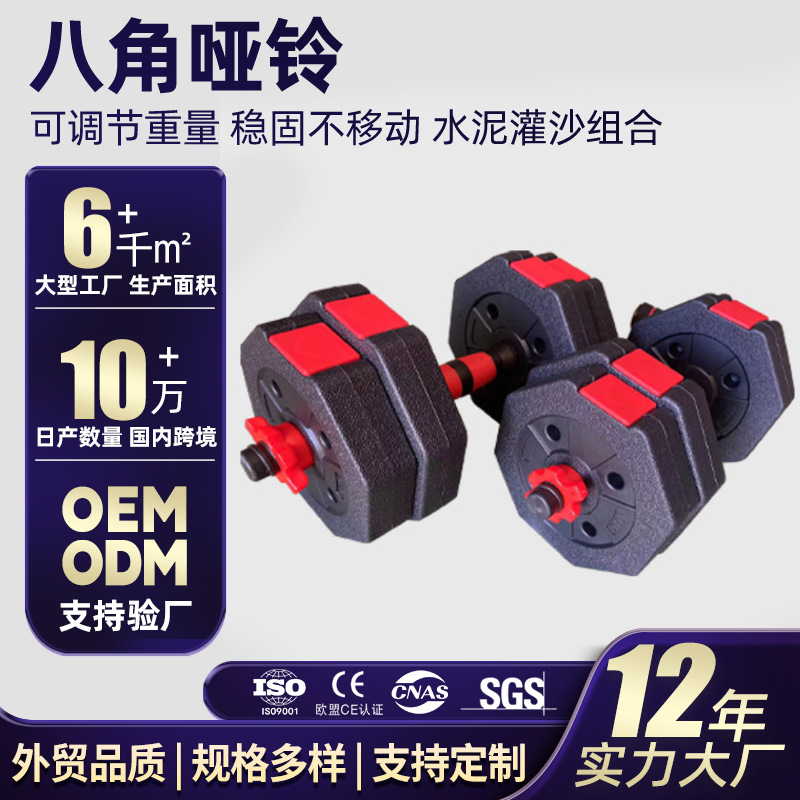 Dumbel semen oktagonal pria, peralatan kebugaran rumah rakitan dapat dilepas, barbel semen dilapisi karet dapat disesuaikan